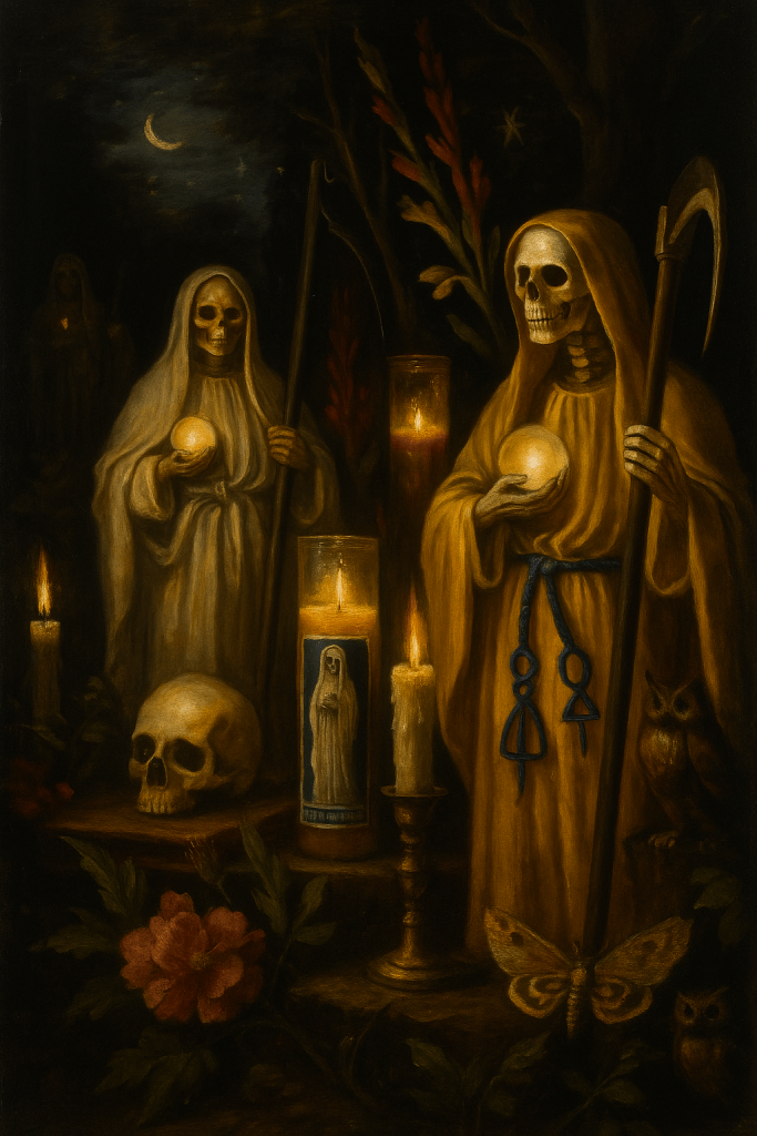 La devoción y la práctica mágica nacen de la mano con la Santa Muerte. Desde que tenemos constancia que se le rinde culto, la Santa Muerte está asociada a trabajos de magia. Aunque al principio se creen que esos trabajos eran de intención amorosa, poco a poco se fueron diversificando hasta cubrir todo el espectro de prácticas mágicas que existen.