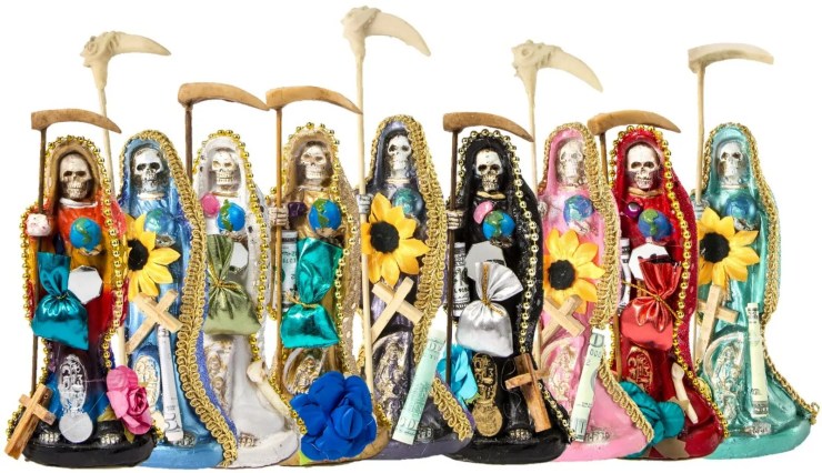 Uno de los aspectos más distintivos del culto de la Santa Muerte es el uso de diversos colores con los que se la viste, cada uno con un significado simbólico y espiritual específico. Estos colores guían a los devotos en sus rituales, altares y peticiones, pues funcionan como un código para enfocar la energía de la Santa Muerte hacia determinadas áreas de la vida.